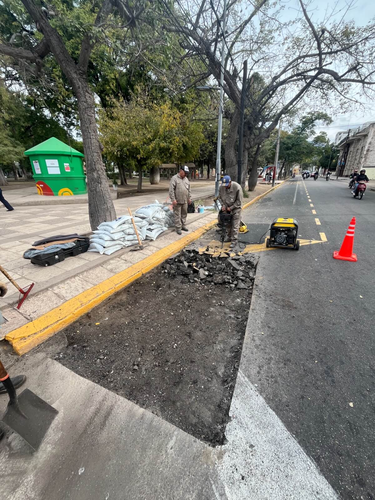 En detalle, se realizaron trabajos sobre avenida Rivadavia en los tramos comprendidos entre Hipólito Yrigoyen y San Martín, y entre San Martín y avenida Gobernador Gordillo, con una superficie total de más de 17 metros cuadrados reparados y más de 3 toneladas de asfalto aplicadas.