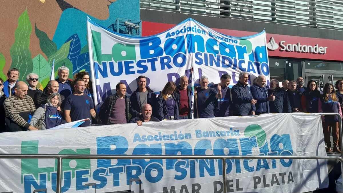 Los trabajadores bancarios realizaron este martes una jornada nacional de protesta en repudio al ajuste, los despidos y el vaciamiento que viene llevando adelante el Banco Santander en distintas provincias del país.