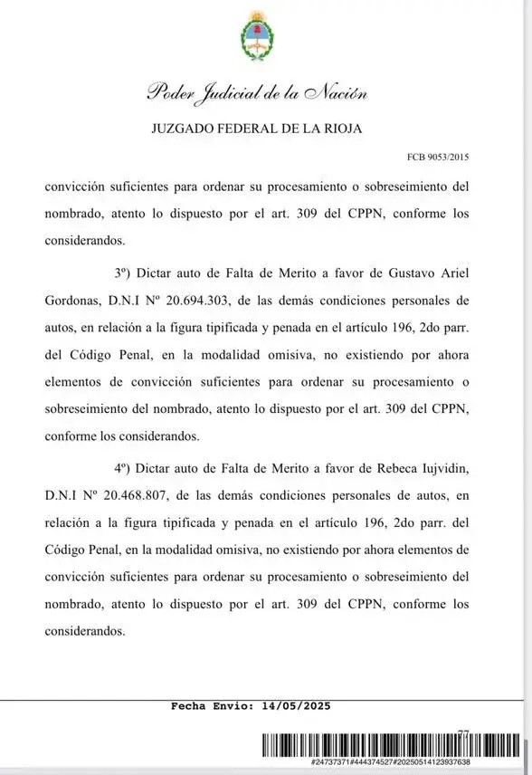 La resolución judicial también benefició a otros cuatro imputados con la falta de mérito, y dispuso el sobreseimiento de otro, dejando al candidato riojano como el principal señalado en la causa.