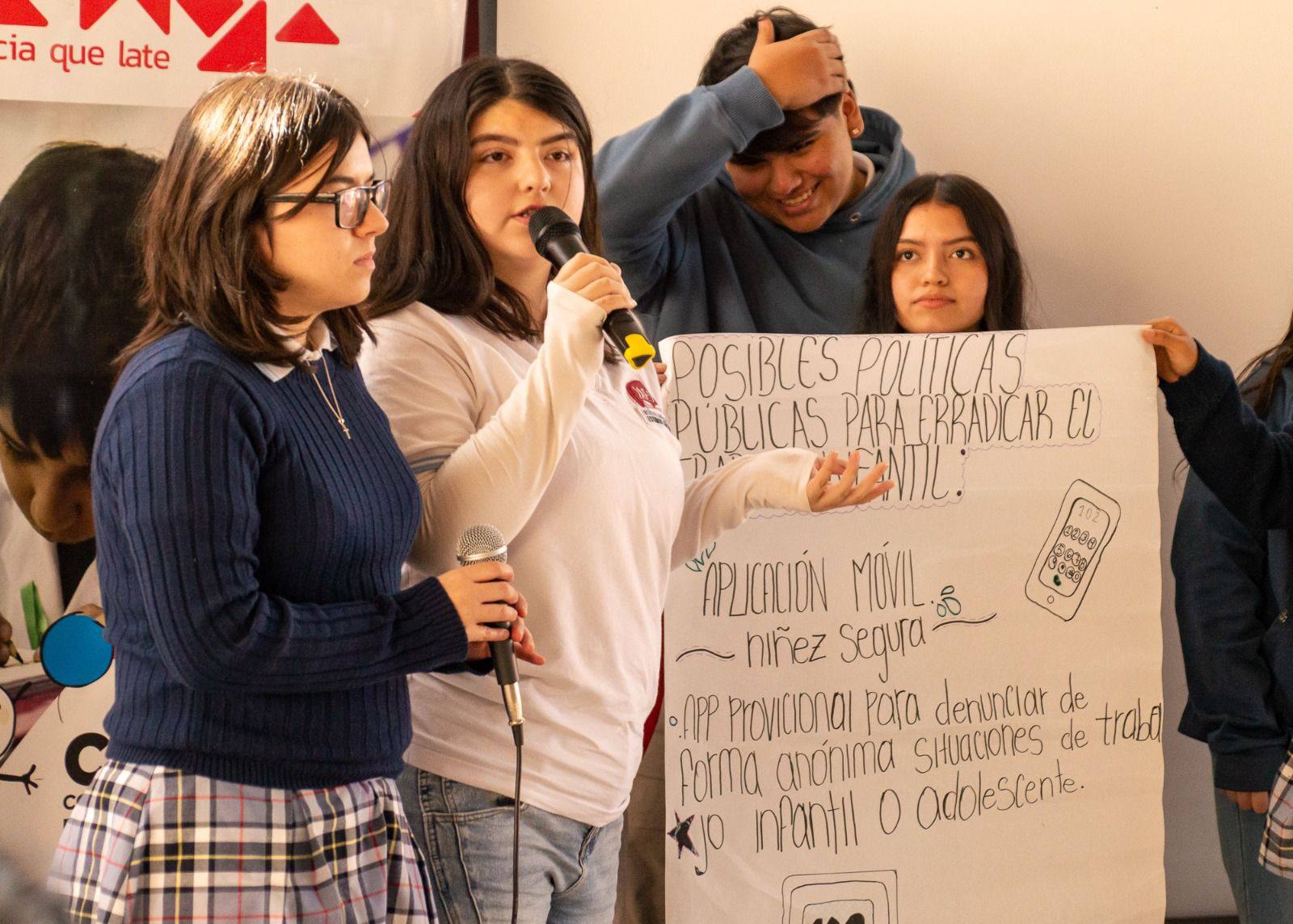 Finalmente los alumnos realizaron un taller grupal con afiches sobre la temática donde expusieron con propuestas de posibles políticas públicas para erradicar el trabajo infantil y proteger el trabajo adolescente en nuestra provincia.