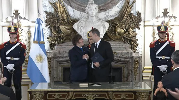 La ceremonia se desarrolló en el Salón Blanco de la Casa Rosada y contó con la presencia de ministros, legisladores y funcionarios cercanos al mandatario.