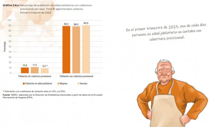 La mayor participación laboral se da entre los 60 y 74 años, mientras que después de los 75 la actividad cae drásticamente. Entre las causas principales se encuentra la urgencia económica: uno de cada diez adultos mayores carece de cobertura previsional, y muchos jubilados reciben haberes insuficientes para cubrir sus necesidades básicas. La brecha de género también impacta: las mujeres cobran en promedio un 27% menos que los hombres.
