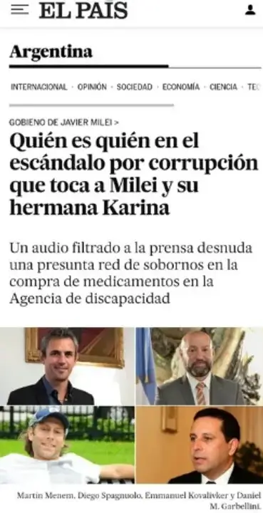 Los audios de Diego Spagnuolo, ex titular de la Agencia Nacional de Discapacidad (ANDIS) y hombre de confianza de Javier Milei, ya recorrieron el mundo. En las grabaciones se lo escucha describir presuntos pedidos de coimas dentro del organismo, un hecho que derivó en una causa judicial y detonó un escándalo que golpea de lleno al gobierno libertario.
