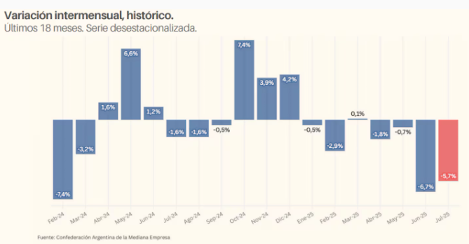 Ventas pymes en julio 2025 (Gráfico: CAME).