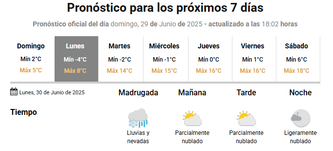 De acuerdo al pronóstico oficial, se espera una mínima de -4°C y una máxima que no superará los 8°C, lo que genera condiciones propicias para la caída de agua nieve o incluso nieve en algunos sectores del departamento Capital.