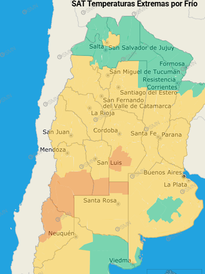 Además, el SMN mantiene vigente un alerta amarilla por bajas temperaturas extremas en toda la provincia. Este tipo de alerta indica que el frío puede tener efectos moderados a altos en la salud, especialmente en los grupos de riesgo, como niños y niñas, personas mayores de 65 años y aquellas con enfermedades crónicas.
