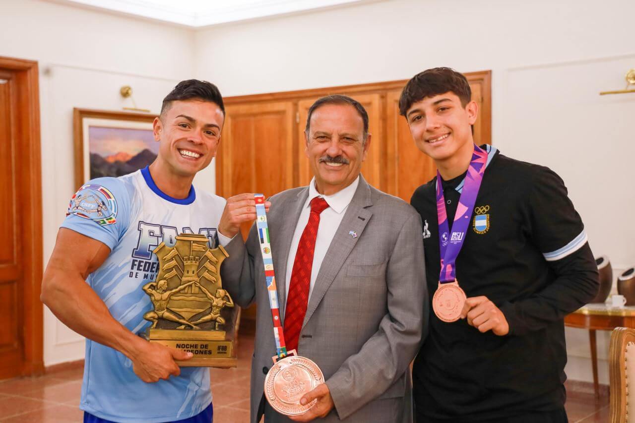 El Gobernador recibió a Pablo Exequiel Martín, tricampeón argentino de fisicoculturismo con agenda en Ecuador, Chile y España, y a Vladimir Milazzo, karateca medallista panamericano que participará en los Juegos Argentinos de Alto Rendimiento en Rosario.