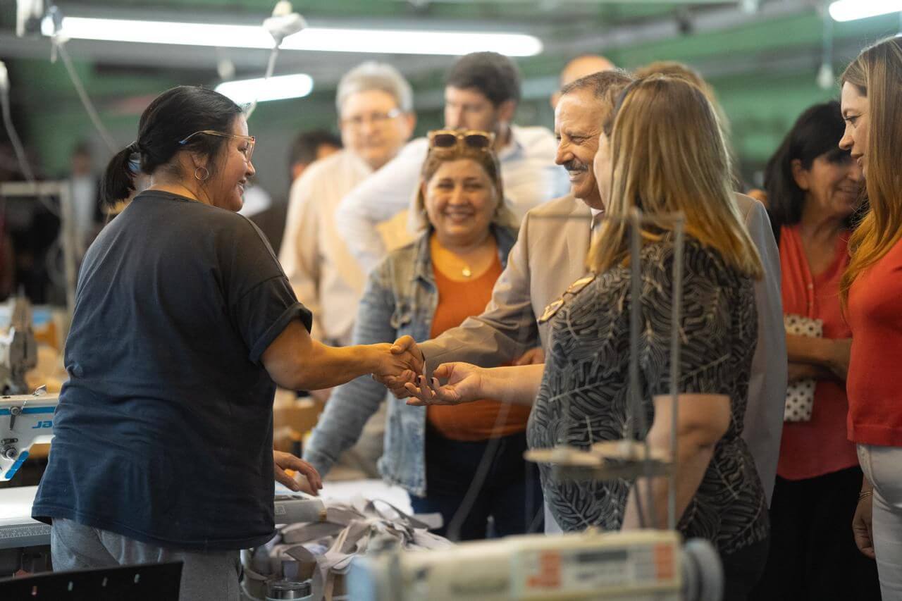 Por su parte, Marta Díaz, presidenta de la cooperativa “El Triunfo: Grandes Sueños”, detalló el trabajo que vienen realizando y remarcó que “tenemos alrededor de 26 personas fijas; hacemos camisas de vestir y de trabajo, tanto para hombres como para mujeres, y también empleamos a chicos con otras capacidades. Trabajamos para empresas de Córdoba, La Rioja y Tucumán. Nos va bien, hemos tenido trabajo todo el año”. Además, agradeció el acompañamiento del Gobierno provincial y planteó necesidades puntuales. “Hoy el Gobernador nos promete la ayuda económica que necesitamos para iluminación y pintura, porque no llegamos nosotros a hacer eso”, detalló.