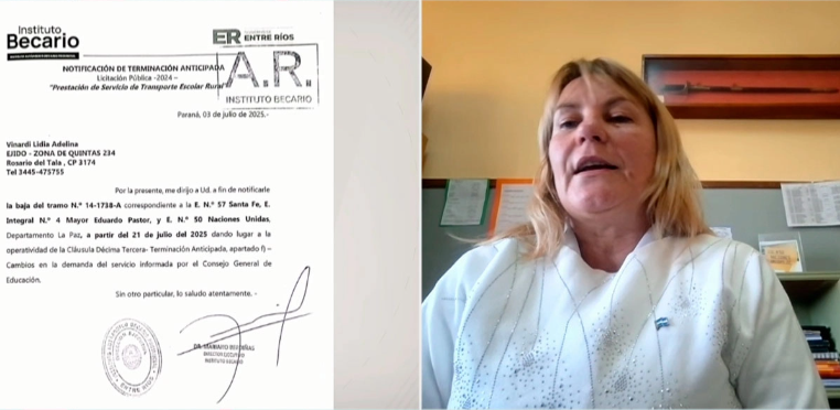 La directora, Stella Maris Weigandt, confirmó que la escuela no recibió ninguna notificación oficial del Consejo General de Educación. La comunicación fue enviada únicamente a la dueña del transporte. “Nos avisaron que el último día del servicio sería antes del receso invernal, y que al regreso ya no estará disponible”, lamentó.