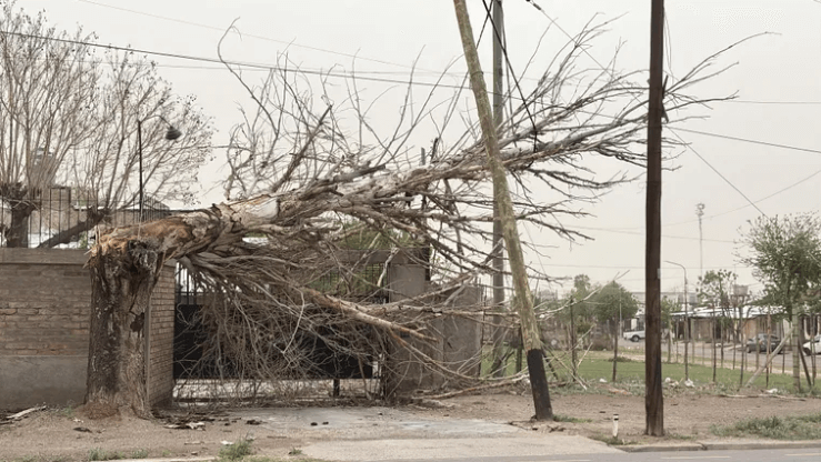 El viento, proveniente del sector sur, provocó un marcado descenso de la temperatura y cortes de luz en varias zonas, incluyendo Godoy Cruz. El aeropuerto El Plumerillo suspendió temporalmente los vuelos hacia Buenos Aires y Chile. Además, se reportan daños por caída de árboles y postes en diferentes localidades.