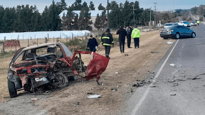 El siniestro se produjo en el kilómetro 18, donde colisionaron de frente un Fiat Palio y un Volkswagen Vento. Un tercer auto, un Chevrolet Prisma, también quedó involucrado en el episodio. Las imágenes del lugar muestran al Fiat completamente destrozado, reflejo de la violencia del impacto.